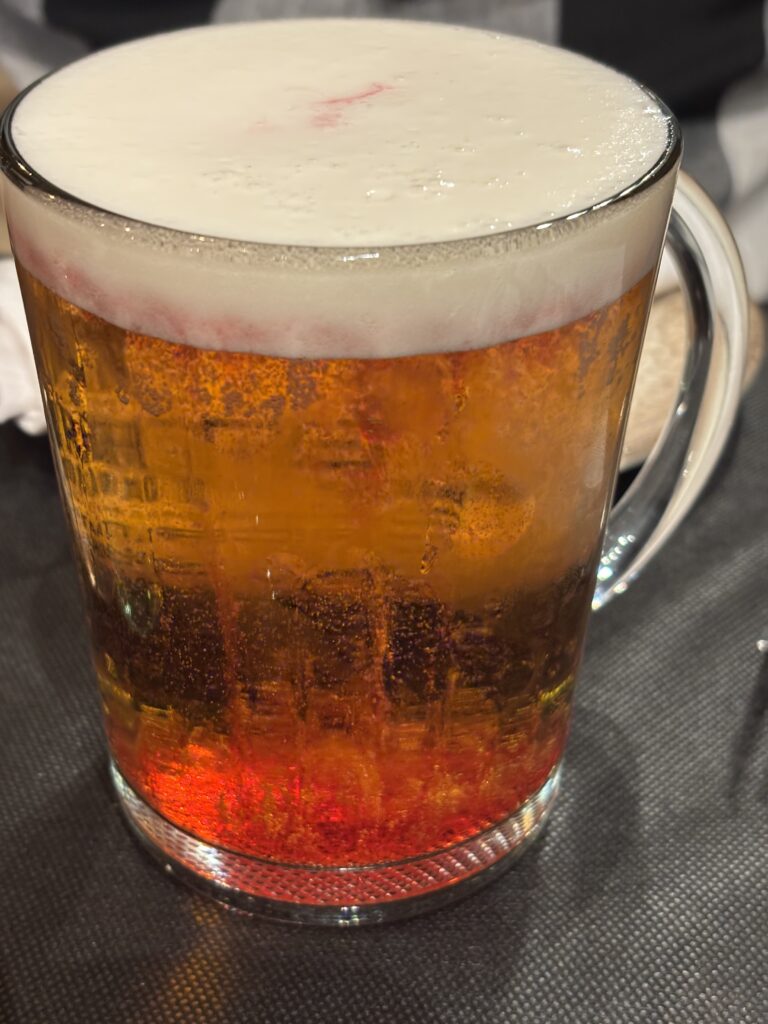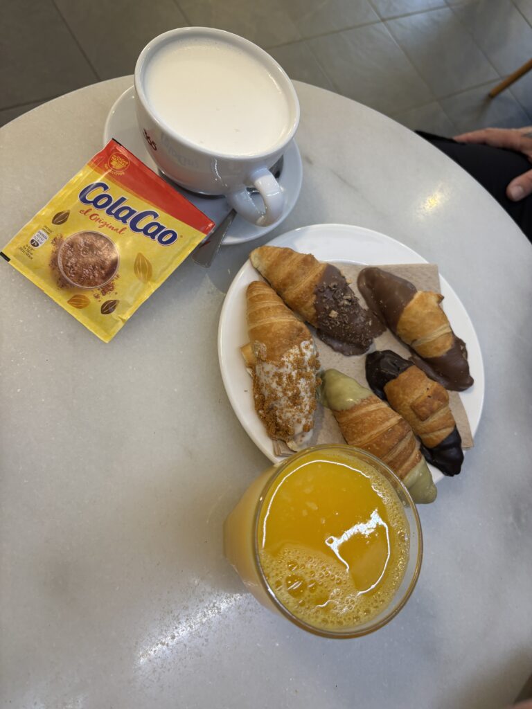 Par contre on a rit: de toute évidence les espagnols ne sont pas habitués à servir des demi-pêche ou des kirs… Le serveur a eu du mal à comprendre que oui, on veut du sirop dans du vin blanc et dans de la bière… Et a servi du sirop de grenadine dans la bière au lieu de pêche 🤣