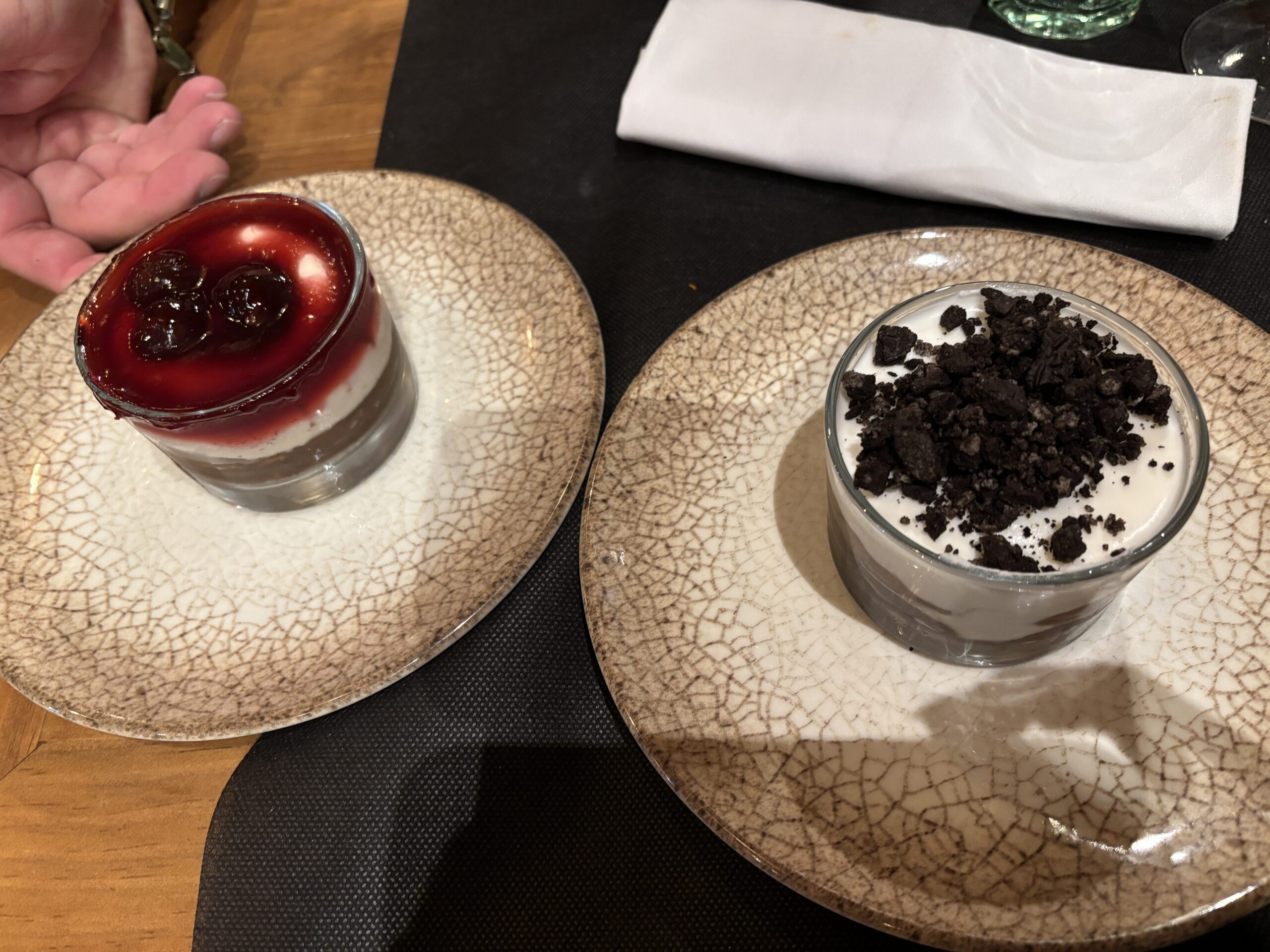 Une belle idée qu’ils ont c’est pour les desserts, ils emmènent un plateau avec tous les desserts dessus. Comme ça, vous pouvez voir la taille et à quoi ça ressemble avant de commander…