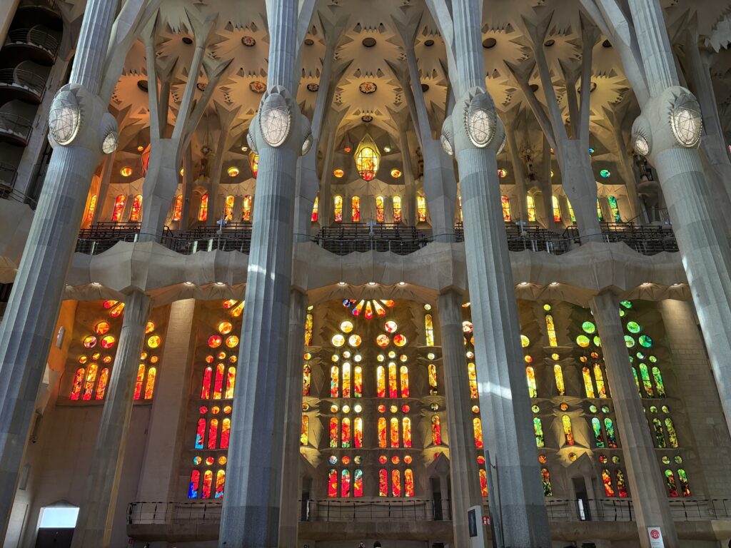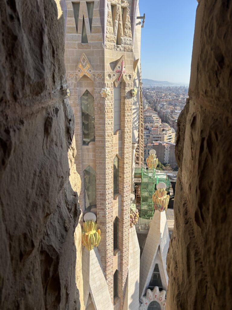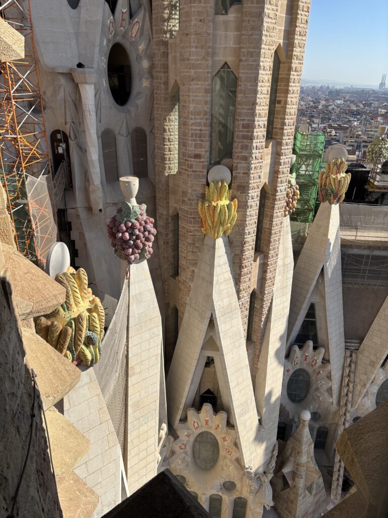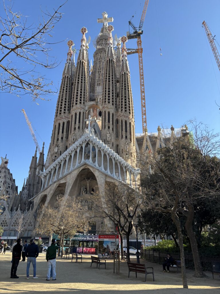 Impossible de visiter Barcelone sans voir la Sagrada Família. C’est ainsi qu’après le petit déjeuner (chez Vivari), nous nous sommes dirigés vers l’emblématique basilique.