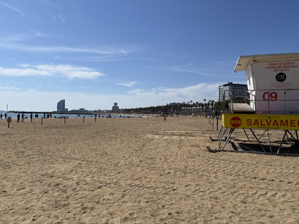 Pour cette première journée, nous avons choisi de ne rien forcer. Direction la Playa de la Mar Bella, une plage plus calme que Barceloneta.