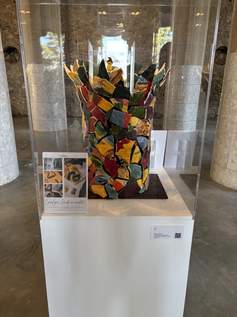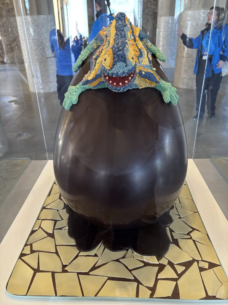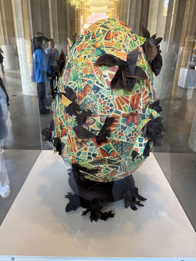 Sous la terrasse, nous nous baladons entre les colonnes et découvrons une exposition éphémères de créations en chocolat!