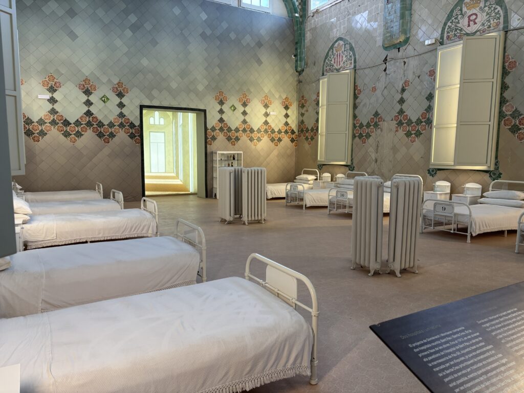 Il a été pensé au début du 20e siècle par l’architecte Lluís Domènech i Montaner. L’idée c’était de créer un lieu de soins beau et agréable, presque comme une petite ville avec plein de pavillons colorés, des tunnels pour les relier, des jardins…