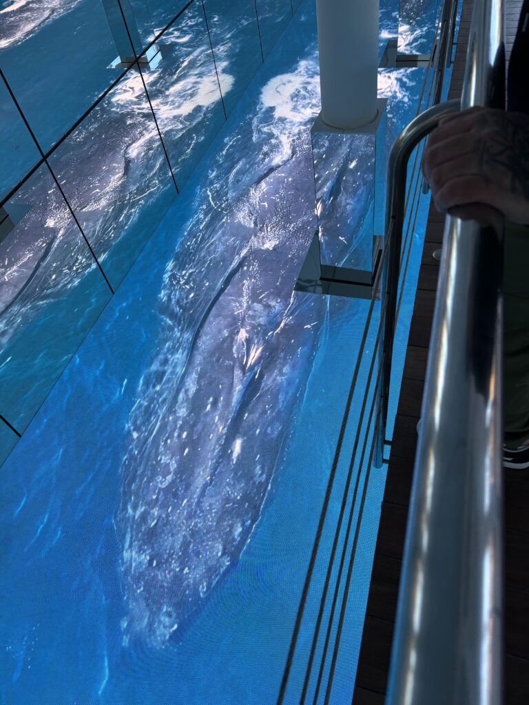 La visite a été vraiment une autre belle surprise. L’entrée avec ses écrans géants donnant l’impression qu’un dauphin et une baleine passe sous vous donne le ton…