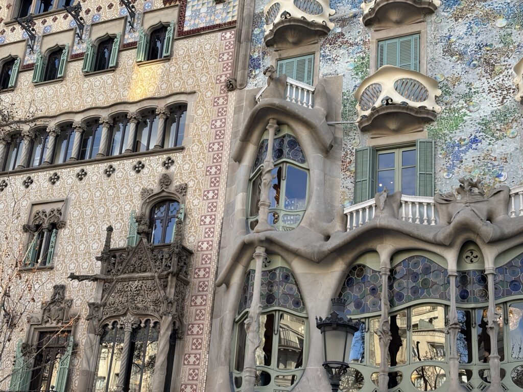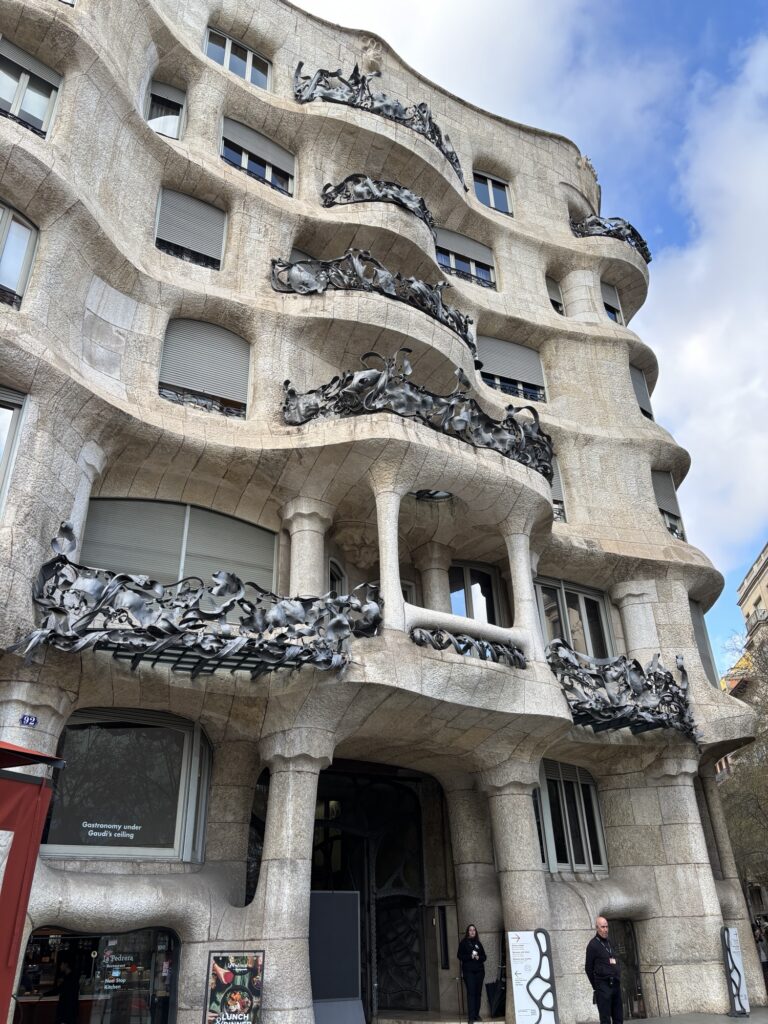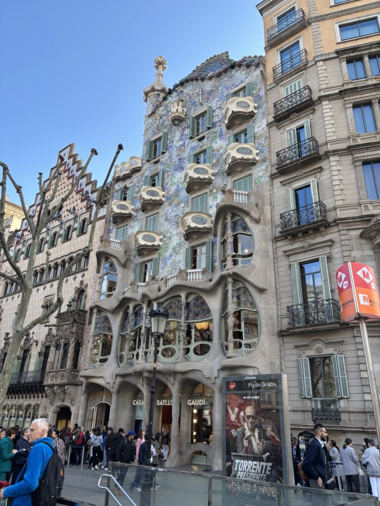 Nous prenons le chemin d’une des rue les plus connues des touristes : la Passeig de Gracia. La rue est vraiment agréable à traverser, avec ses bâtiments construits par Gaudi, ses larges trottoirs et ses boutiques variées.